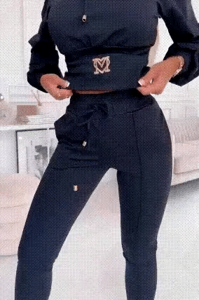 COZY HOODED SWEATSHIRT: The fitted hoodie offers a snug yet comfortable fit, enhanced by a drawstring hood for extra warmth. Its cropped design complements the high-waist joggers, highlighting your curves effortlessly.